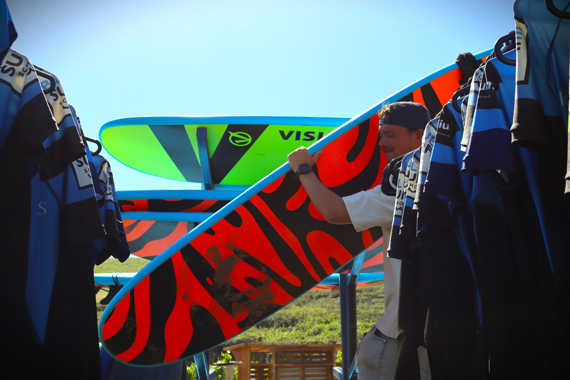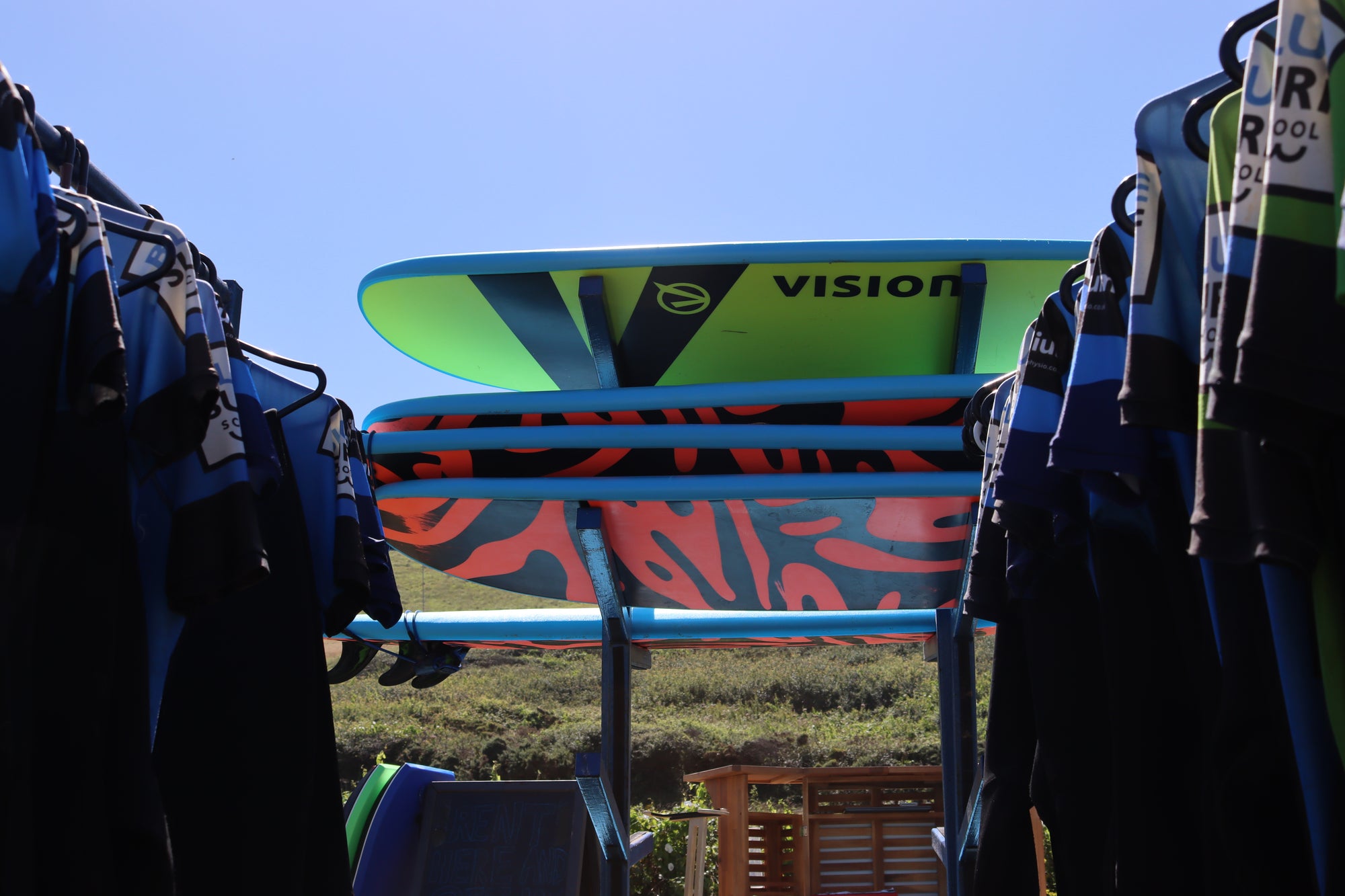At Blue Surf School we work hard to maintain and repair our equipment so you WON'T find yourself lumped with a ridiculously-heavy waterlogged board or ripped wetsuit when you hire with us!